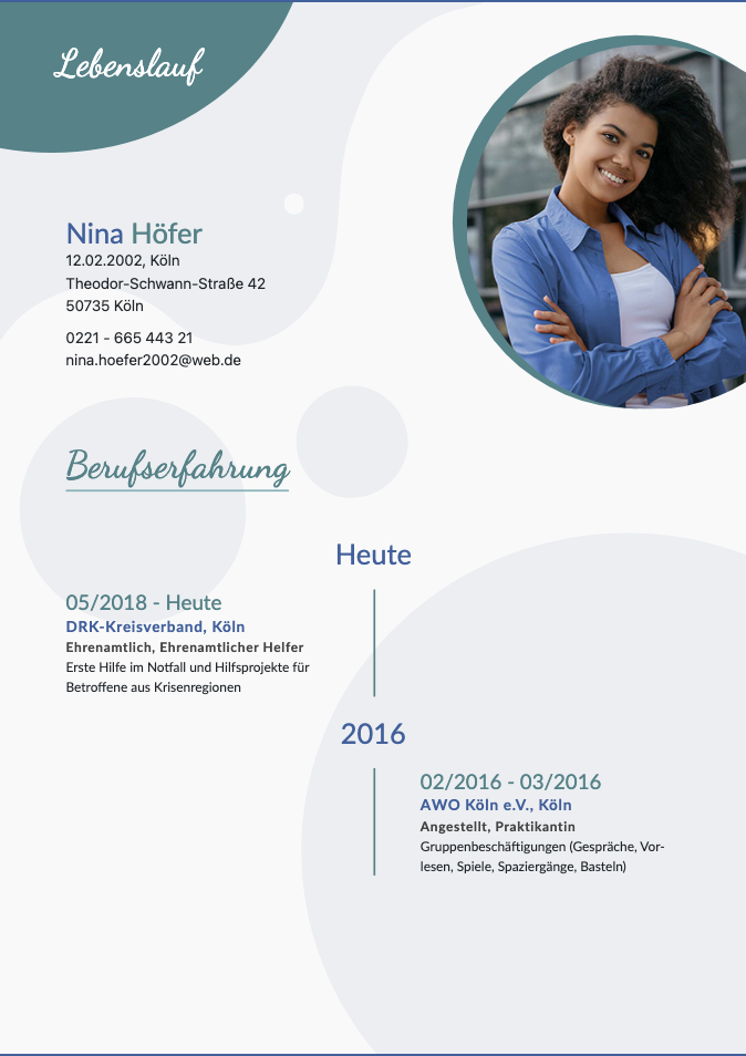 Bei der Eingabe der Berufserfahrungen und des Bildungswegs können sich deine Kandidat:innen weiterhin auf den Inhalt konzentrieren. Um eine übersichtliche Darstellung und eine anti-chronologisch Sortierung der Einträge kümmert sich unser CV-Generator automatisch.